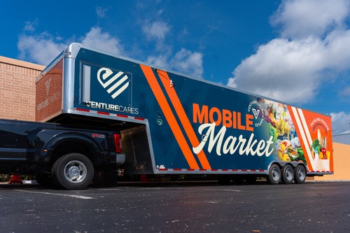 The Mobile Market is a single-aisle, full-choice grocery store on wheels stocked with quality, nutritious food available at no cost to you.